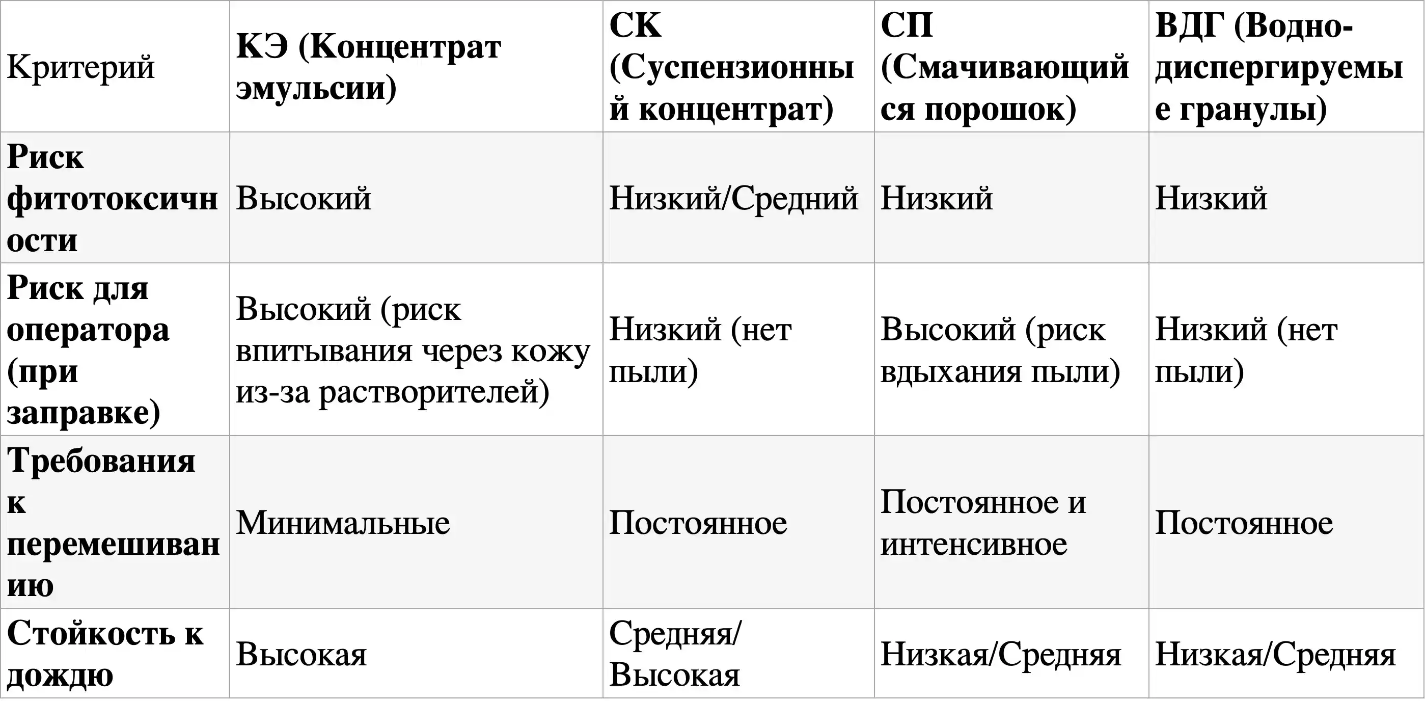 - Меньшая фитотоксичность для обрабатываемой культуры.