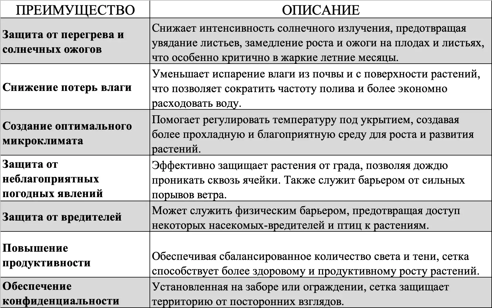 Выбор подходящей сетки является ключевым фактором для достижения желаемого результата. Основные параметры, на которые следует обратить внимание, — это процент затенения и тип материала.