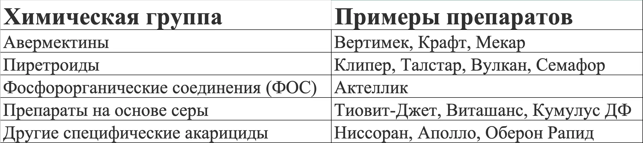 - Синтетические акарициды Это "тяжелая артиллерия", применяемая при сильных заражениях или когда биопрепараты не справляются. Они делятся на группы в зависимости от действующего вещества и механизма действия.