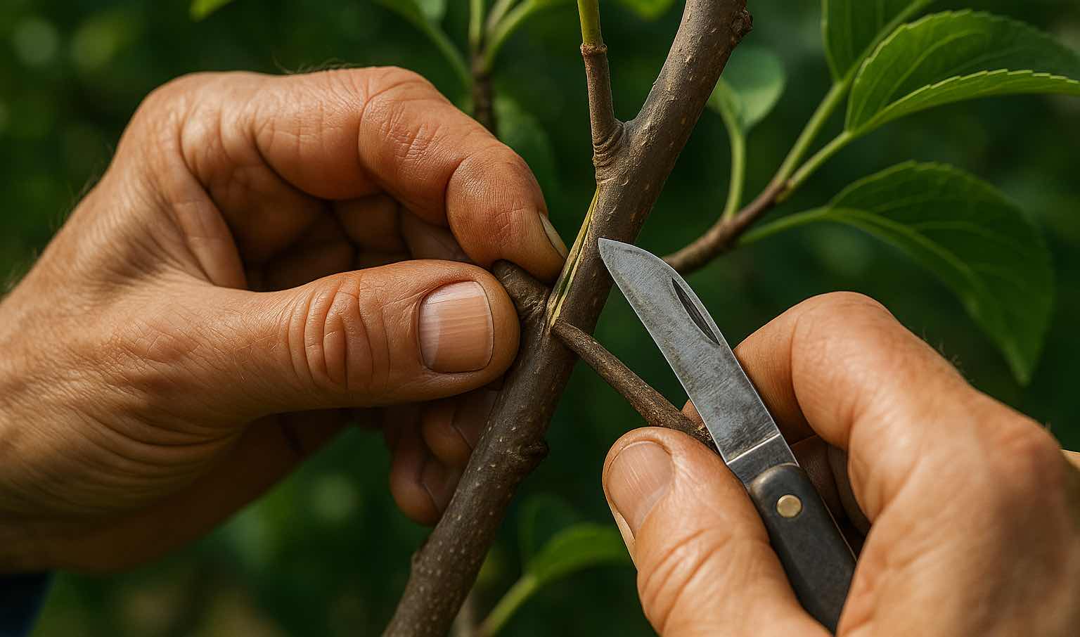 - Время суток: В жаркую погоду прививайте рано утром, пока прохладнее и нет прямого солнечного света, чтобы предотвратить высыхание. Работайте быстро.