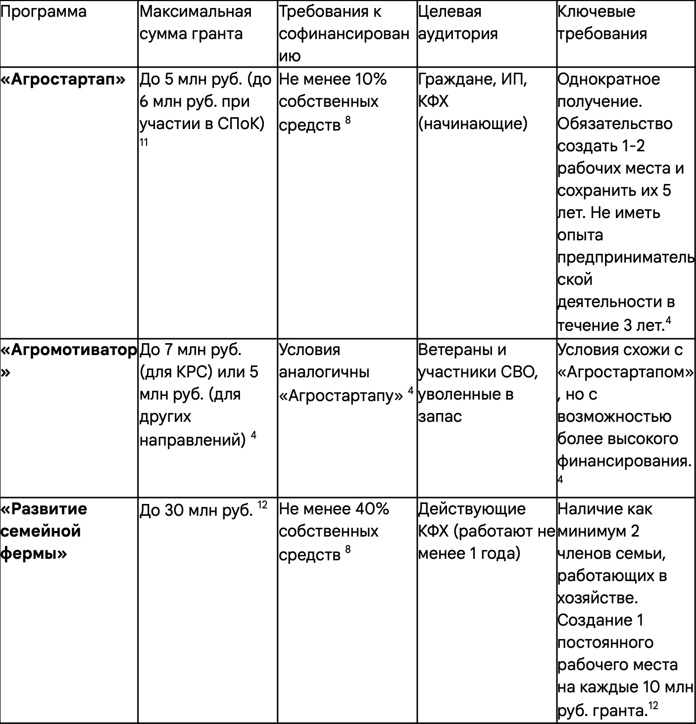 Федеральная и региональная политика предусматривает дифференцированные грантовые программы, нацеленные на разные категории агропредприятий.