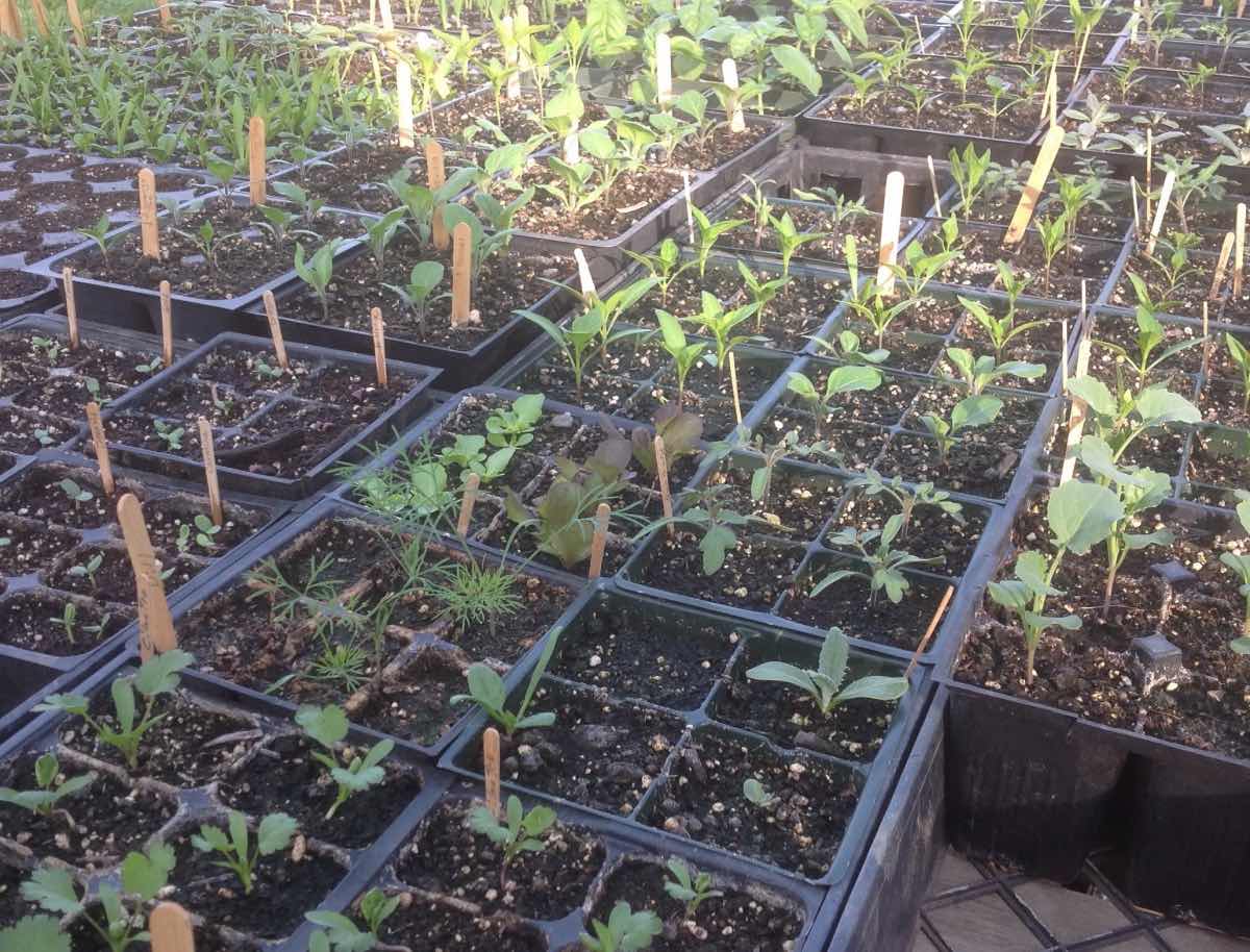 Рассада, выращенная в маркированных лотках в условиях профессионального питомника после стратификации семян и проращивания.