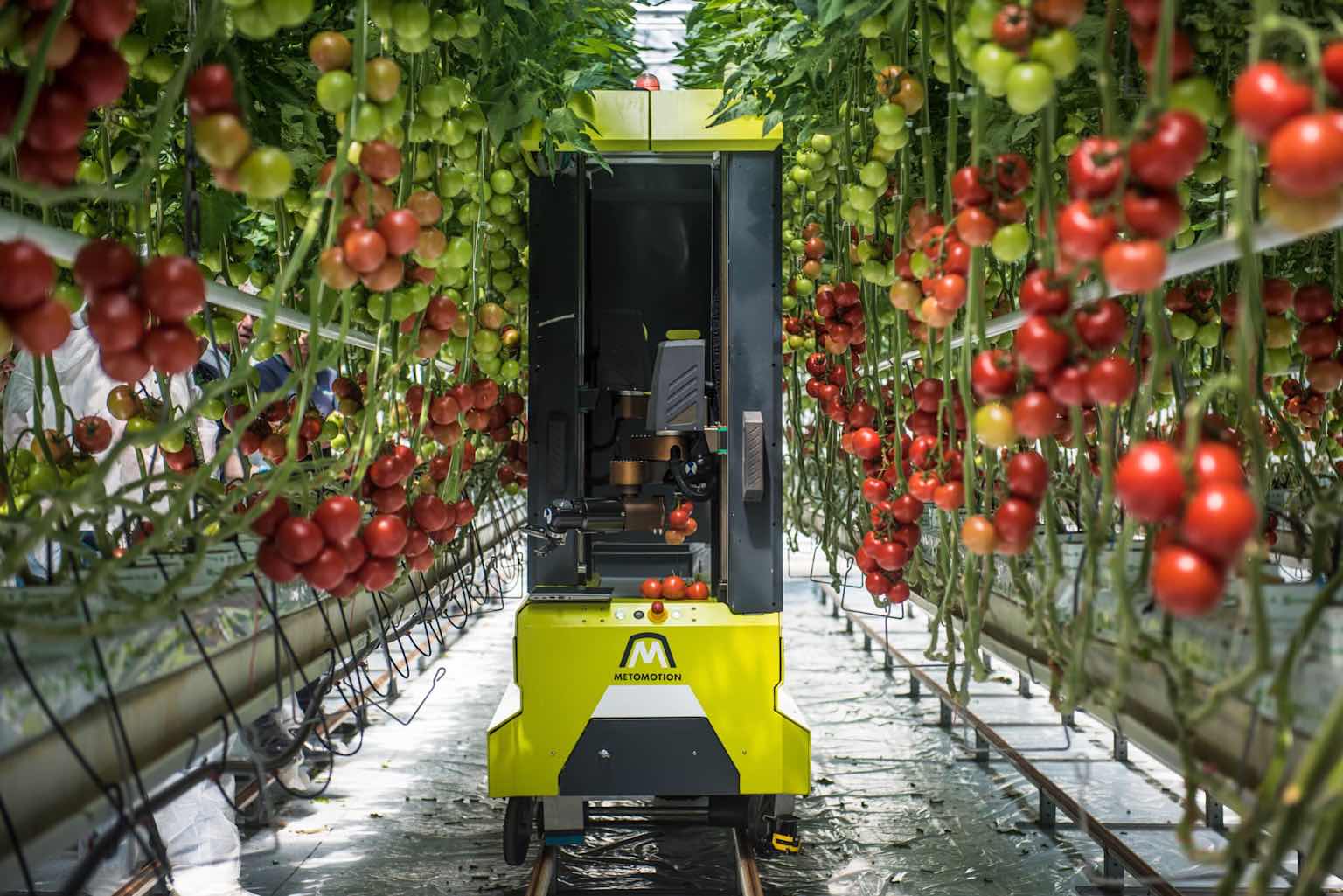 Сельскохозяйственный робот Metomotion собирает урожай томатов в высокотехнологичной теплице