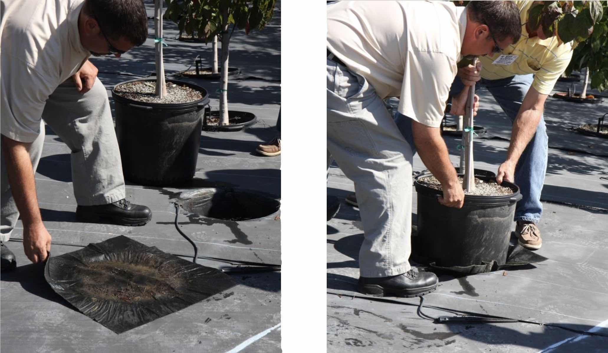Во-вторых, повышение технологичности и снижение трудозатрат. Укорененный в земле сокет-контейнер полностью исключает проблему опрокидывания растений ветром, что экономит значительное количество рабочего времени, которое в классическом контейнерном питомнике тратится на подъем и перестановку. Кроме того, растения в PNP могут быть собраны (убраны) и реализованы в любое время года, поскольку их корневая система полностью заключена в контейнере. Для сбора урожая достаточно просто поднять вставной горшок из сокета, что намного быстрее и требует меньшего количества крупногабаритной техники, чем выкопка полевых растений. По сравнению с крупномерами с комом земли (B&B), растения из PNP легче, что удешевляет транспортировку.