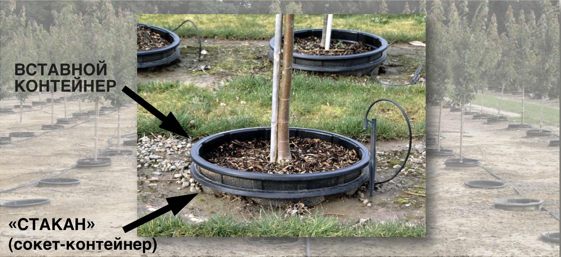 По своей сути PNP является гибридным подходом, который сочетает в себе сильные стороны обоих классических методов. Система состоит из двух ключевых компонентов: «стакан» или «сокет-контейнер», который устанавливается в поле постоянно и является полустационарным элементом, и «вставной контейнер», в котором фактически выращивается растение в беспочвенном субстрате. При этом верхний край сокет-контейнера обычно выступает над уровнем почвы всего на 7–10 см. Изначально эта методика, известная как «Система Миннесоты», была разработана в 1980-х годах как альтернатива полевому выращиванию для теневыносливых деревьев со стержневой корневой системой. Сегодня диапазон применения расширился: от кустарников до крупных деревьев, обычно в контейнерах объемом от 5 до 100 литров, причем наиболее востребованными являются размеры на 5–50 литров.