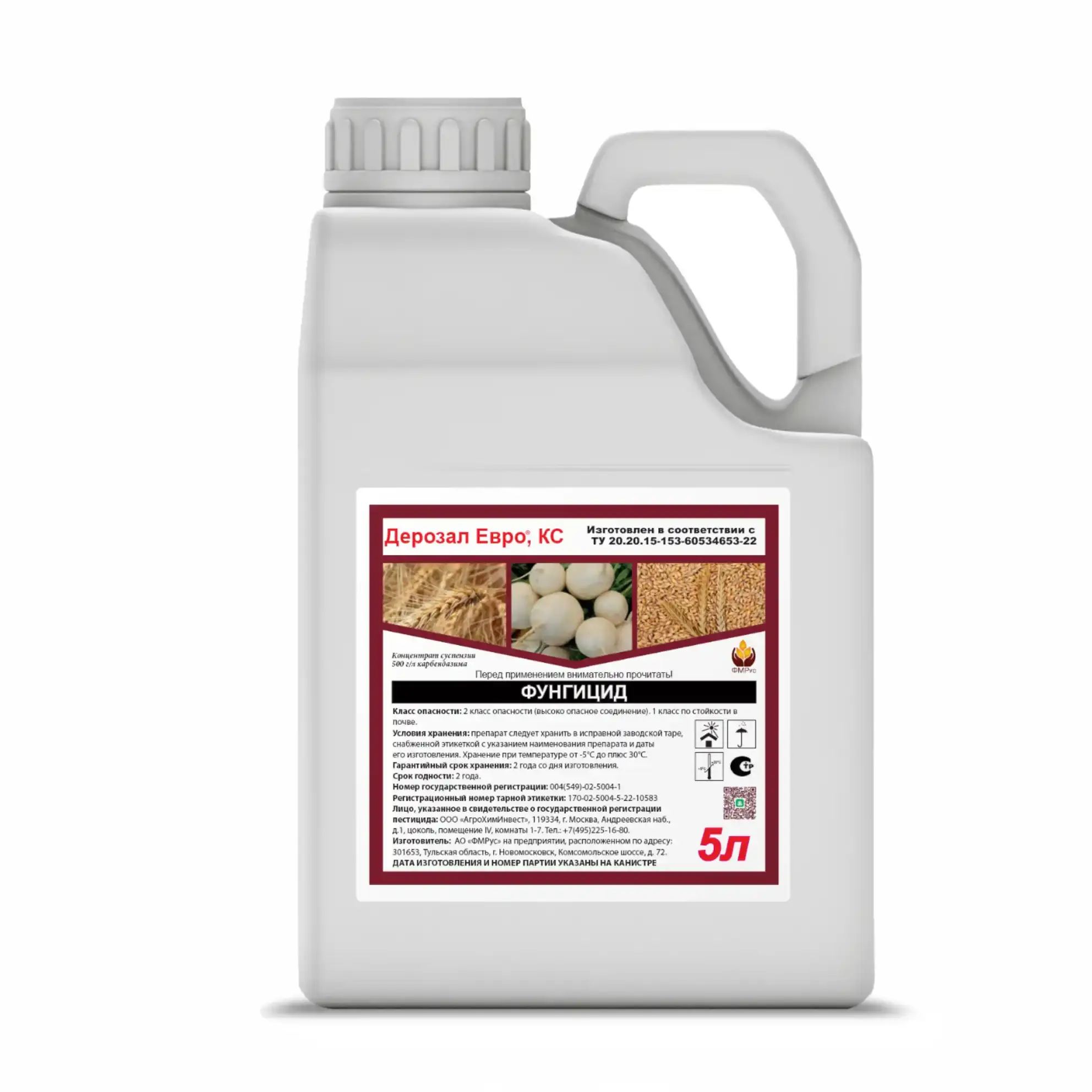 Фунгицид Дерозал Евро — системный фунгицид широкого спектра для зерновых культур и сахарной свёклы. Особо эффективен против корневых и прикорневых гнилей, а также мучнистой росы и гельминтоспориозов; стабильно работает даже при низких температурах воздуха. Обладает как профилактическим, так и лечебнымэффектом, защищая молодые растения на старте вегетации и снижая риск полегания у пшеницы и ячменя.