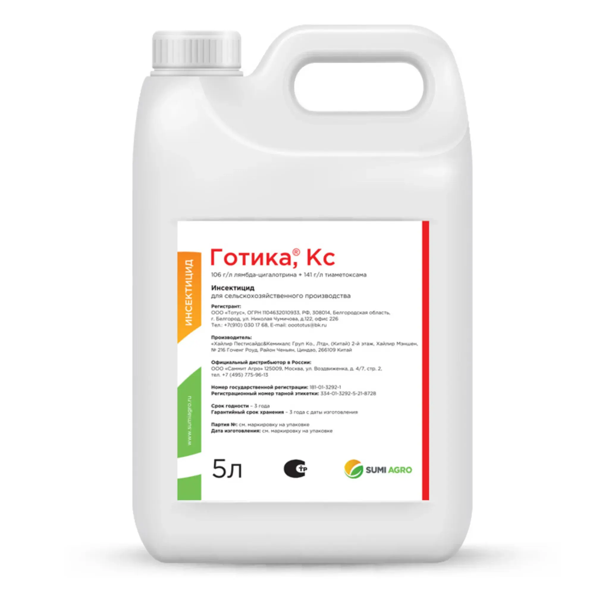Инсектицид Готика — двухкомпонентный инсектицид контактно-кишечного и системного действия для защиты широкого спектра полевых культур от сосущих и листогрызущих вредителей. Сочетание тиаметоксама (системный неоникотиноид) и лямбда-цигалотрина (пиретроид с «нокдаун-эффектом») обеспечивает быстрый стоп-эффекти устойчивую последействующую защиту в тканях растения.