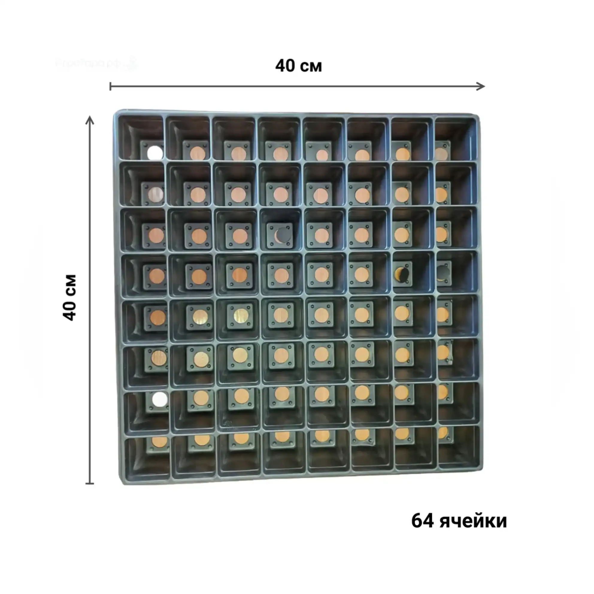 Кассета для рассады пластиковая, 64 ячейки, 40х40х5 см