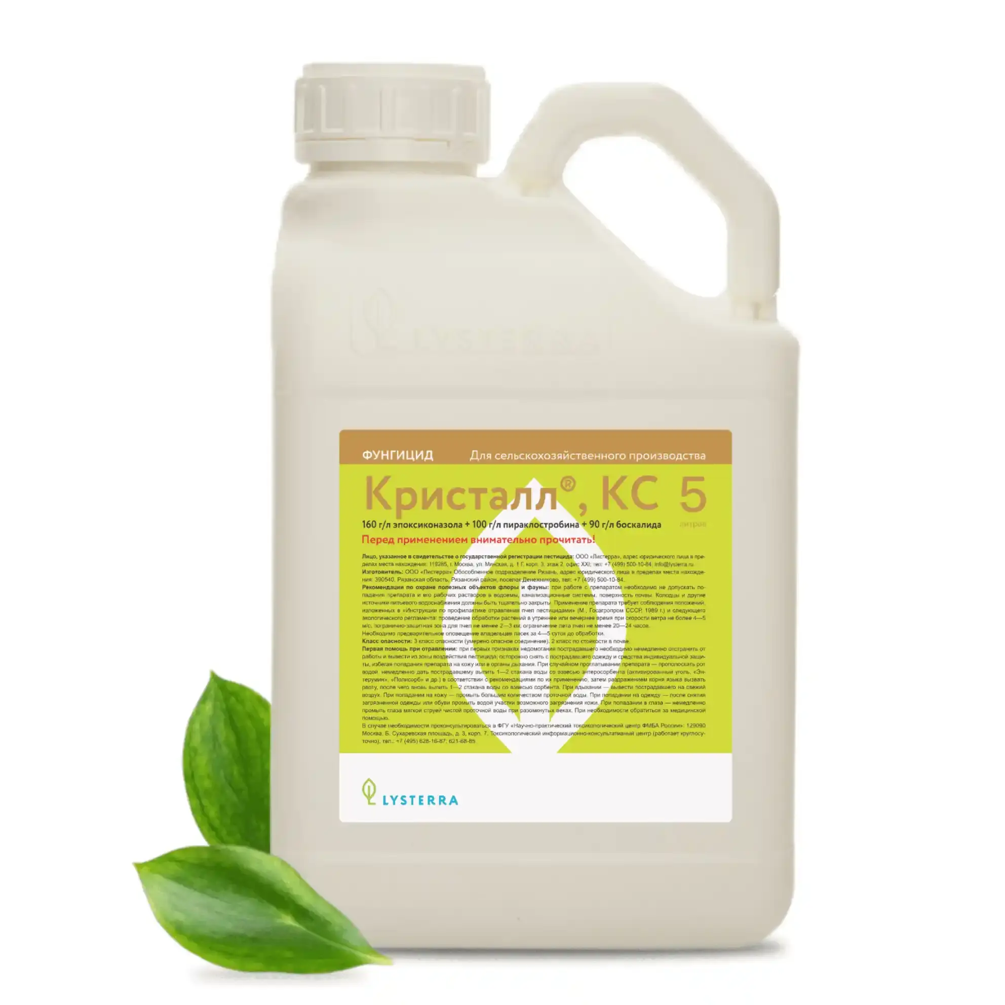 Фунгицид Кристалл — фолиарный фунгицид контактно-системного, лечащего и искореняющего действия на основе трёх действующих веществ: эпоксиконазол 160 г/л (триазол, FRAC 3), пираклостробин 100 г/л (стробилурин, FRAC 11) и боскалид 90 г/л (карбоксамид, SDHI, FRAC 7). Комбинация трёх FRAC-кодов обеспечивает быстрый «стоп-эффект», длительный защитный фон и выраженное физиологическое (stay-green) действие.