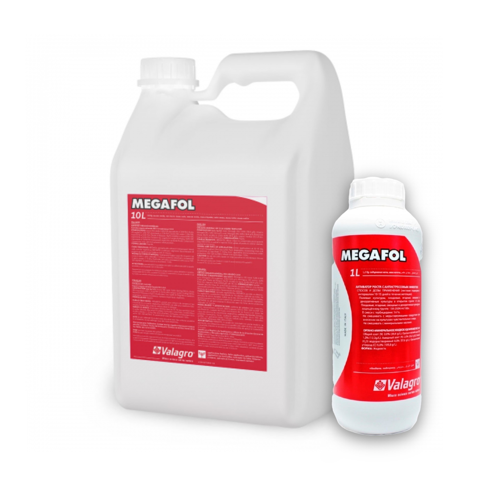 Мегафол – специальный антистрессовый агрохимикат, произведенный из растительных аминокислот, в особом сочетании с калием, бетаином, полисахаридами и прогормональными соединениями. Основные компоненты Мегафола получены путем энзимного гидролиза из высоко-протеиновых растительных субстратов. Применение Мегафола повышает урожайность и качество продукции, и стабилизирует эти показатели в неблагоприятных условиях.