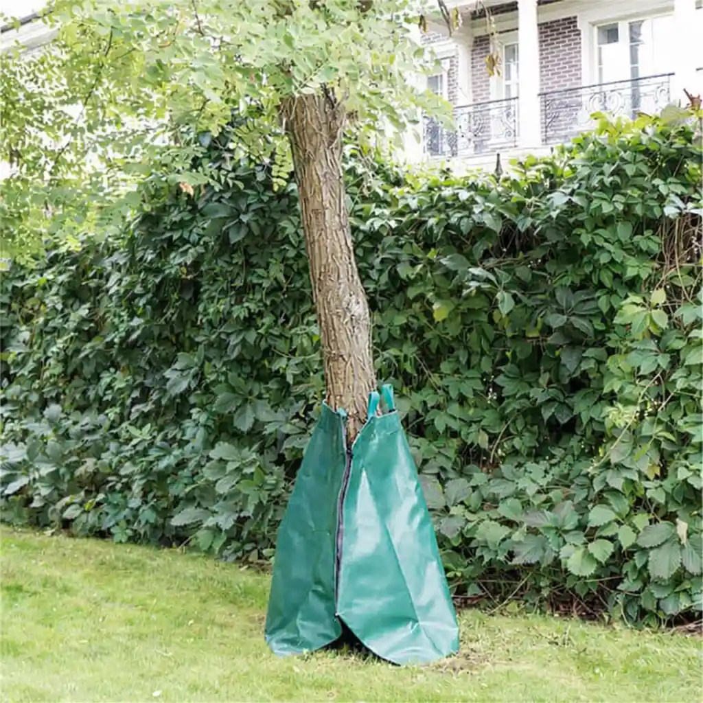 Конструкция понятная: мешок из прочной ПВХ-ткани оборачивается вокруг ствола, застёгивается на молнию и заполняется водой через специальное отверстие. Объём - до 40 литров. Дальше он делает всё сам: вода медленно поступает к корням в течение 5-8 часов, без вашего участия.