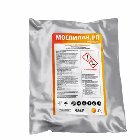 Моспилан – системный инсектицид контактно-желудочного действия, эффективный при борьбе с представителями семейства чешуйчатокрылых, полутвердокрылых, трипсов, твердокрылых и равнокрылых.