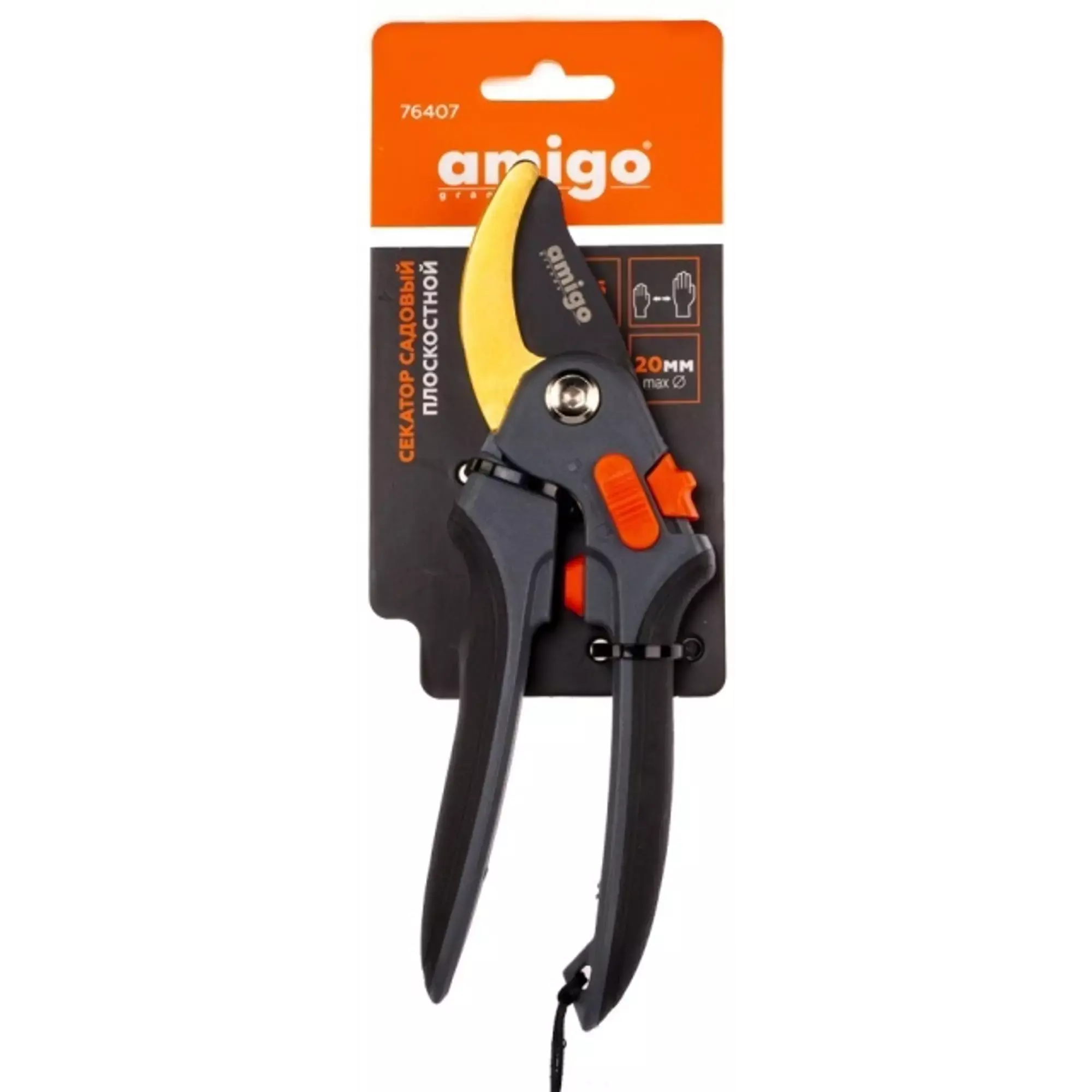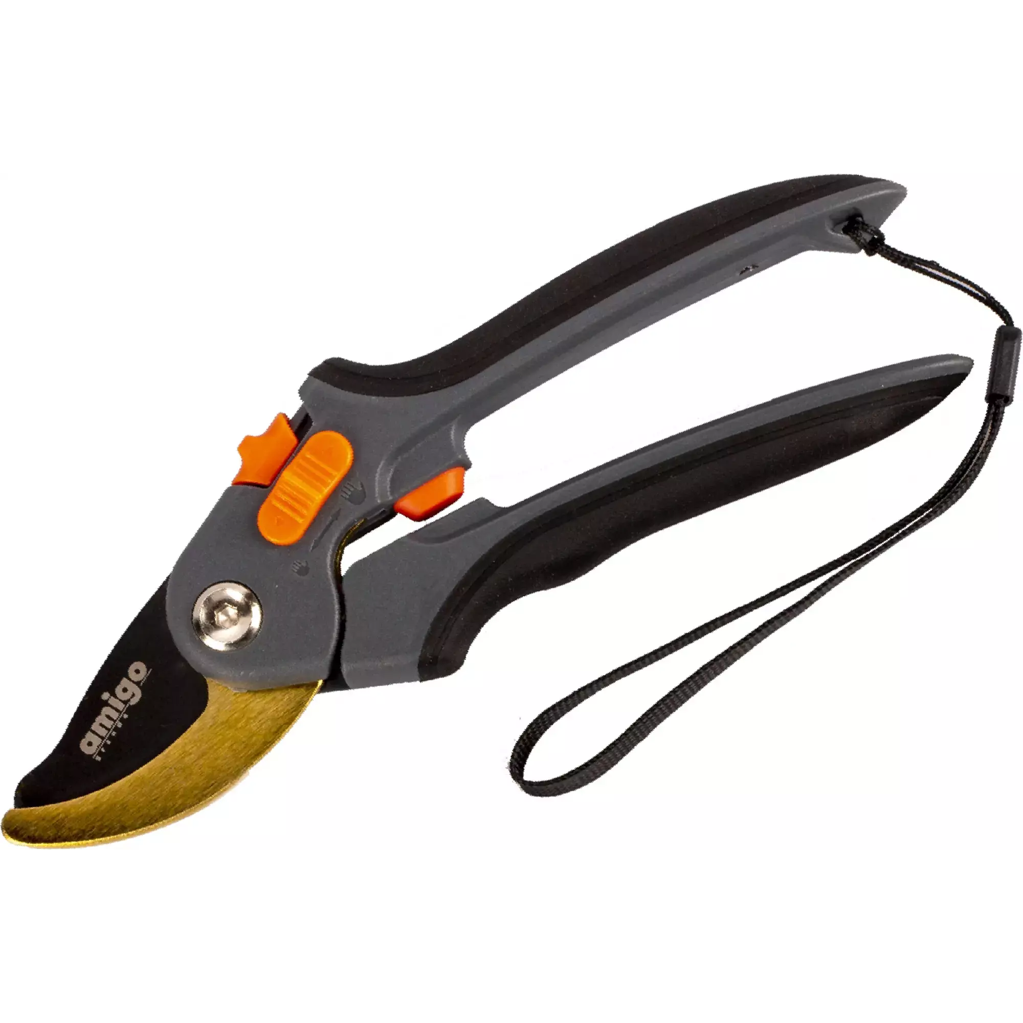Секатор садовый Amigo 76407 используется для подравнивания и санитарной обрезки растений. За счет ручек эргономичной формы удобно лежит в ладони. Шнурок позволяет подвесить инструмент на кисть и не потерять во время работы, обеспечивает компактность хранения в хозблоке.