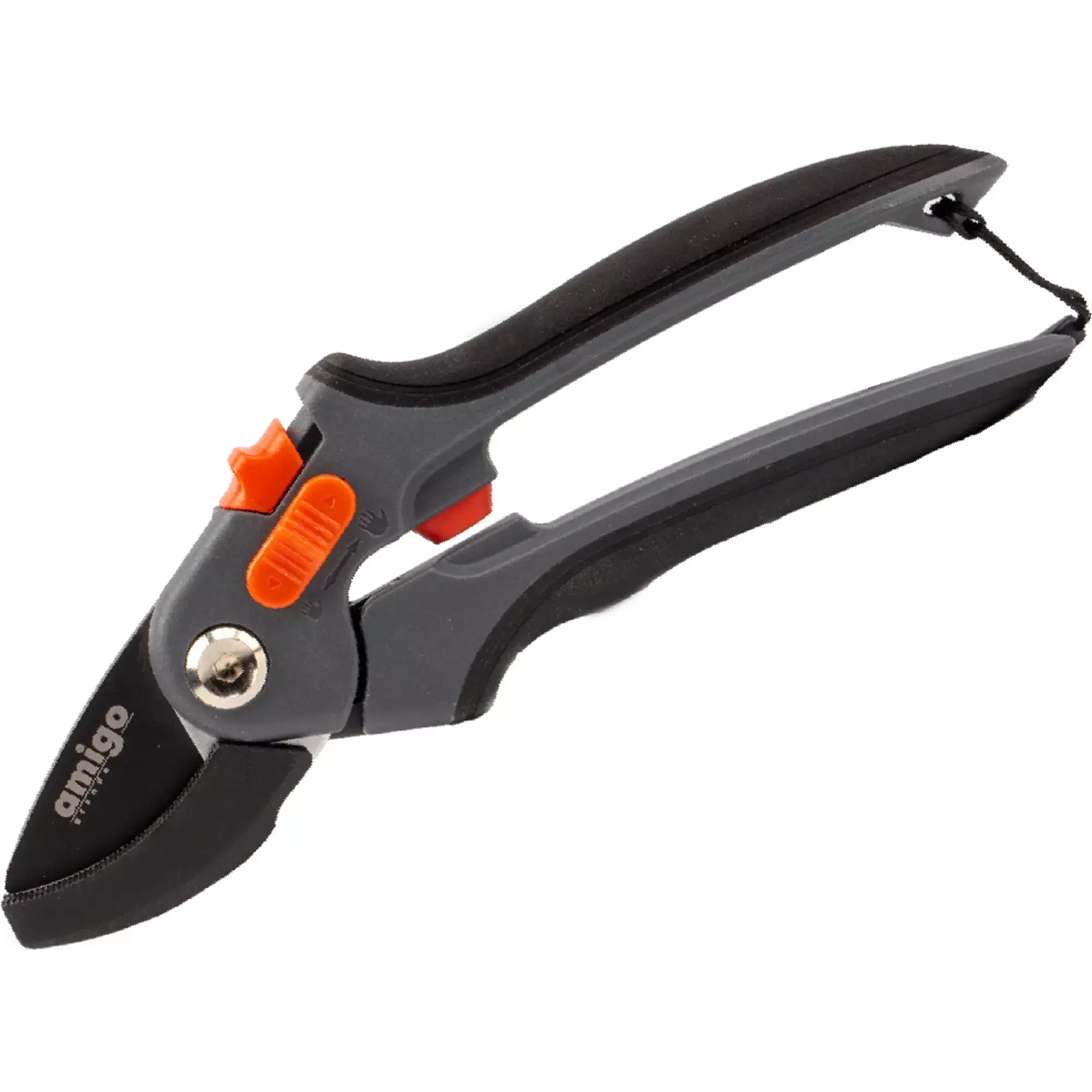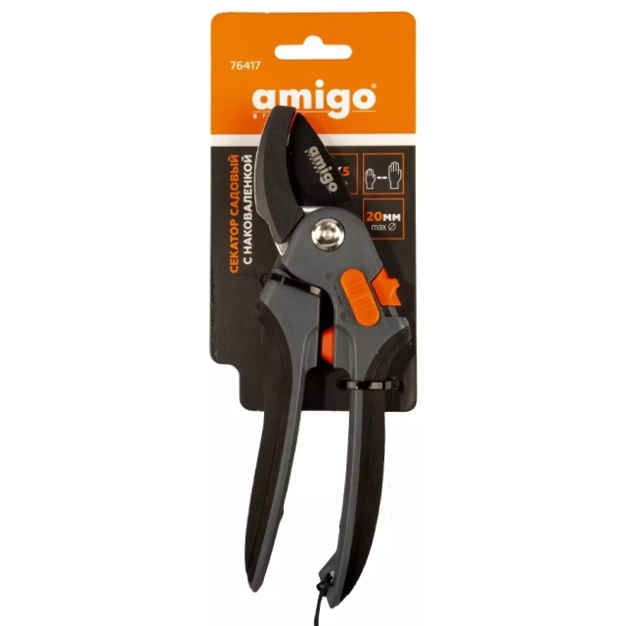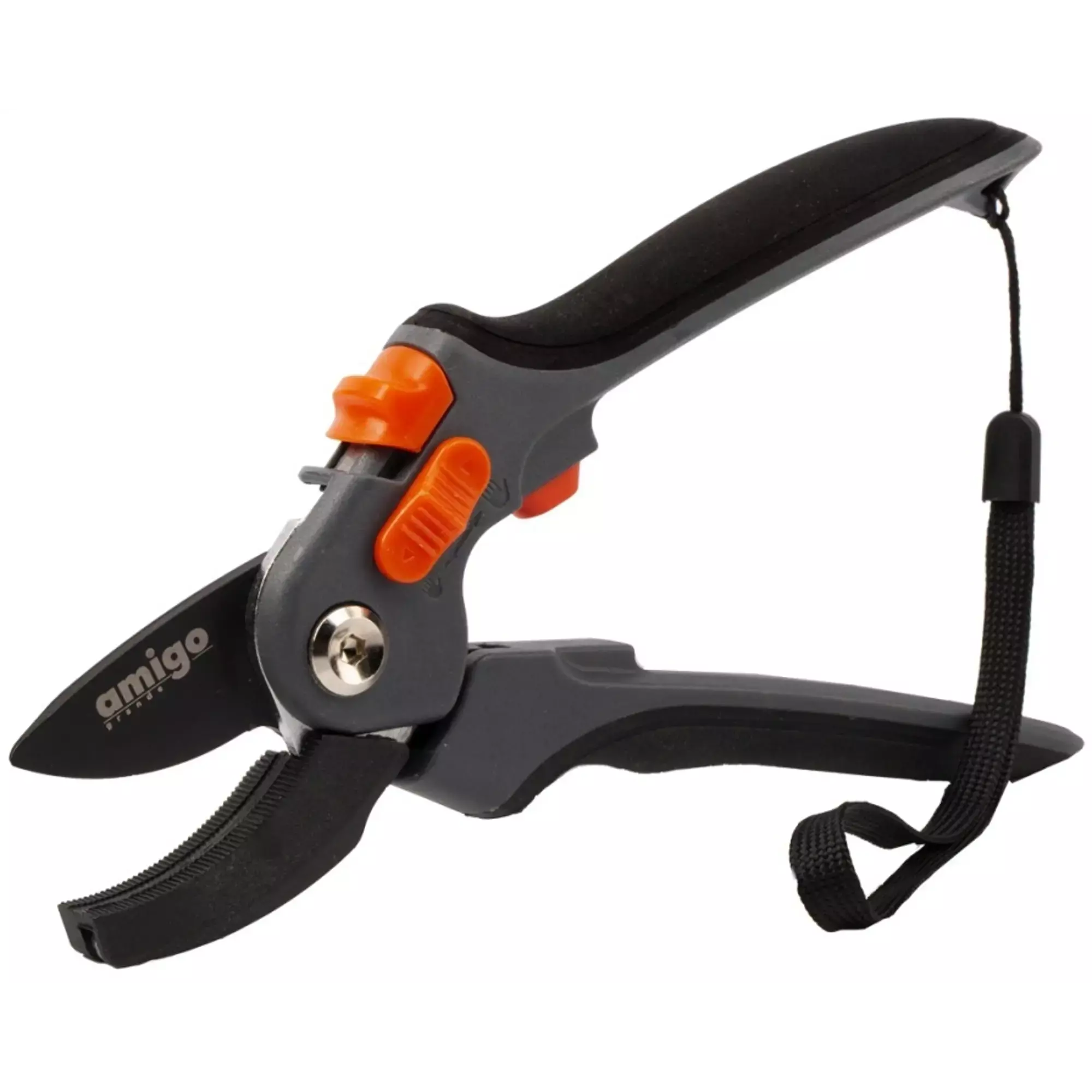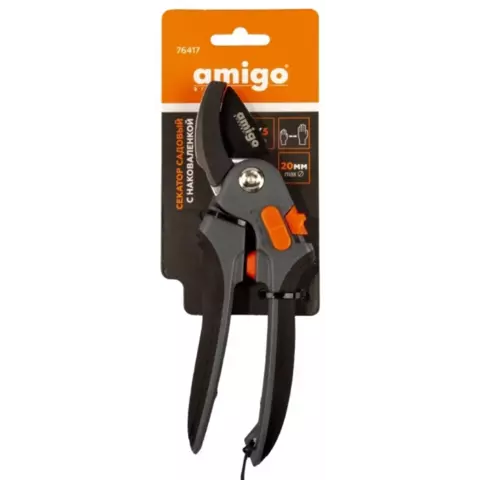 Секатор садовый Amigo 76417 используется для подравнивания и санитарной обрезки растений. За счет ручек эргономичной формы удобно лежит в ладони. Шнурок позволяет подвесить инструмент на кисть и не потерять во время работы, обеспечивает компактность хранения в хозблоке.