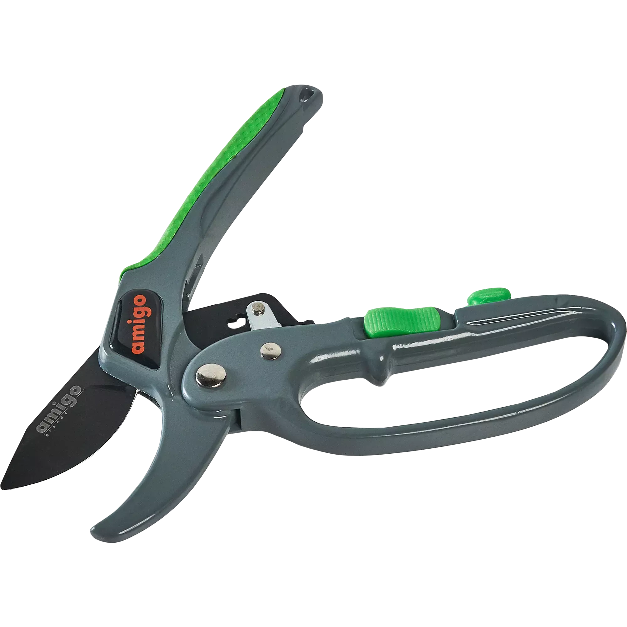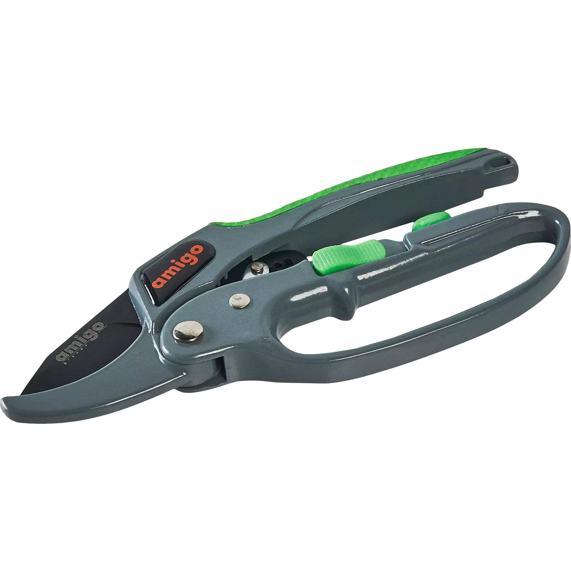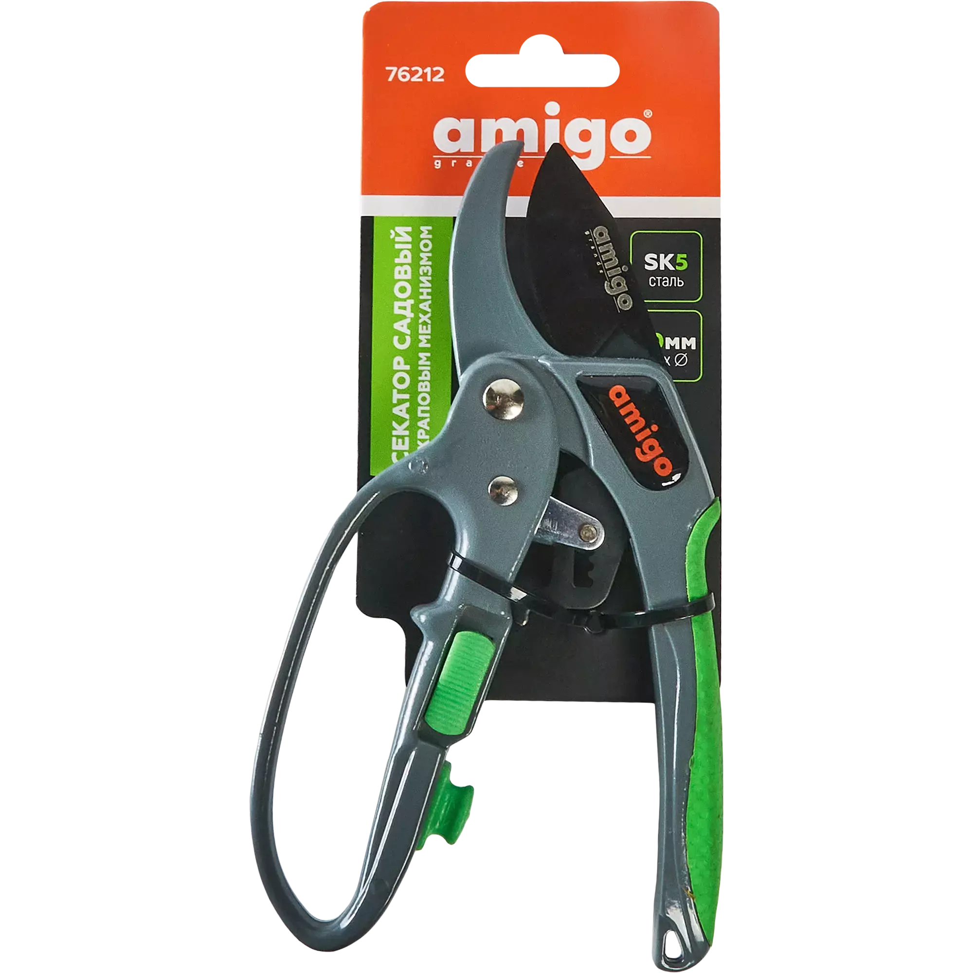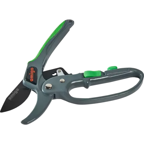 Секатор садовый Amigo 76212 используется для проведения санитарной, формовочной обрезки растений, веток кустарников или деревьев. Рукоятки удобно лежат в ладонях, не скользят. Фиксатор позволяет хранить или транспортировать инструмент со сомкнутыми лезвиями, что обеспечивает безопасность.