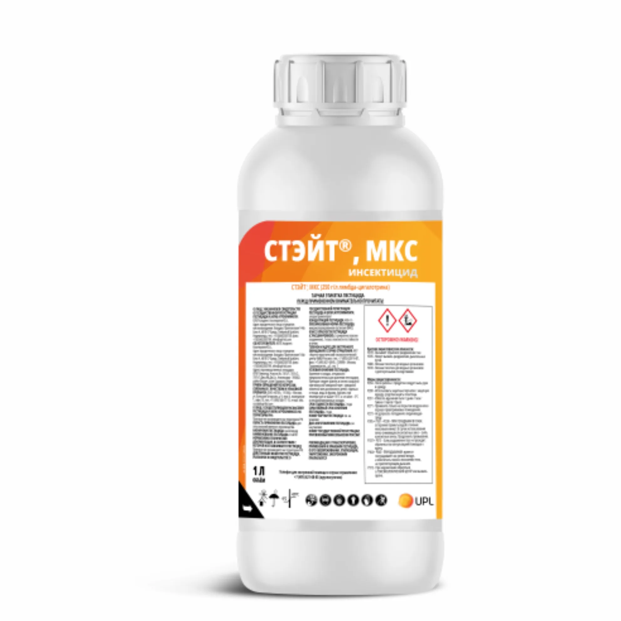 СТЭЙТ®, МКС — инсектицид контактно-кишечного действия в форме микрокапсульной суспензии (МКС)для защиты широкого ряда культур от комплекса грызущих и сосущих вредителей. Микрокапсулы обеспечивают плавное высвобождение действующего вещества, высокую дождеустойчивость и пролонгированный эффект, а также стабильную работу в более тёплую погоду, чем у классических пиретроидов.