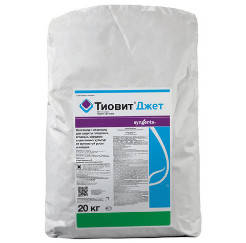 Тиовит Джет — серный контактный фунгицид и акарицид для борьбы с мучнистой росой и клещами; работает как в защите, так и в «санитарной» обработке кроны.