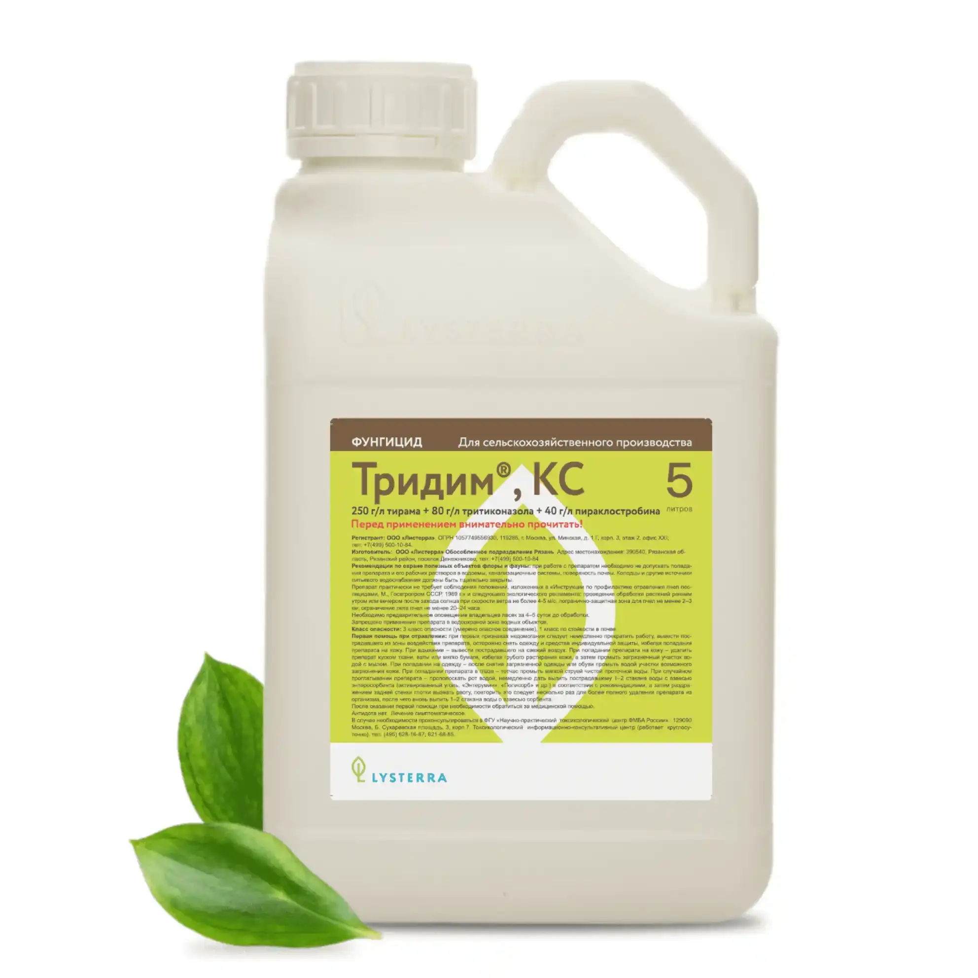 Тридим - трёхкомпонентный контактно-системный фунгицид для зерновых (пшеница, ячмень, рожь, овёс) с лечебным, профилактическим и частично искореняющим действием. Работает против комплекса грибных и бактериальных заболеваний и может применяться как по вегетации, так и в формате протравителя семян(Протравитель Тридим, КС).