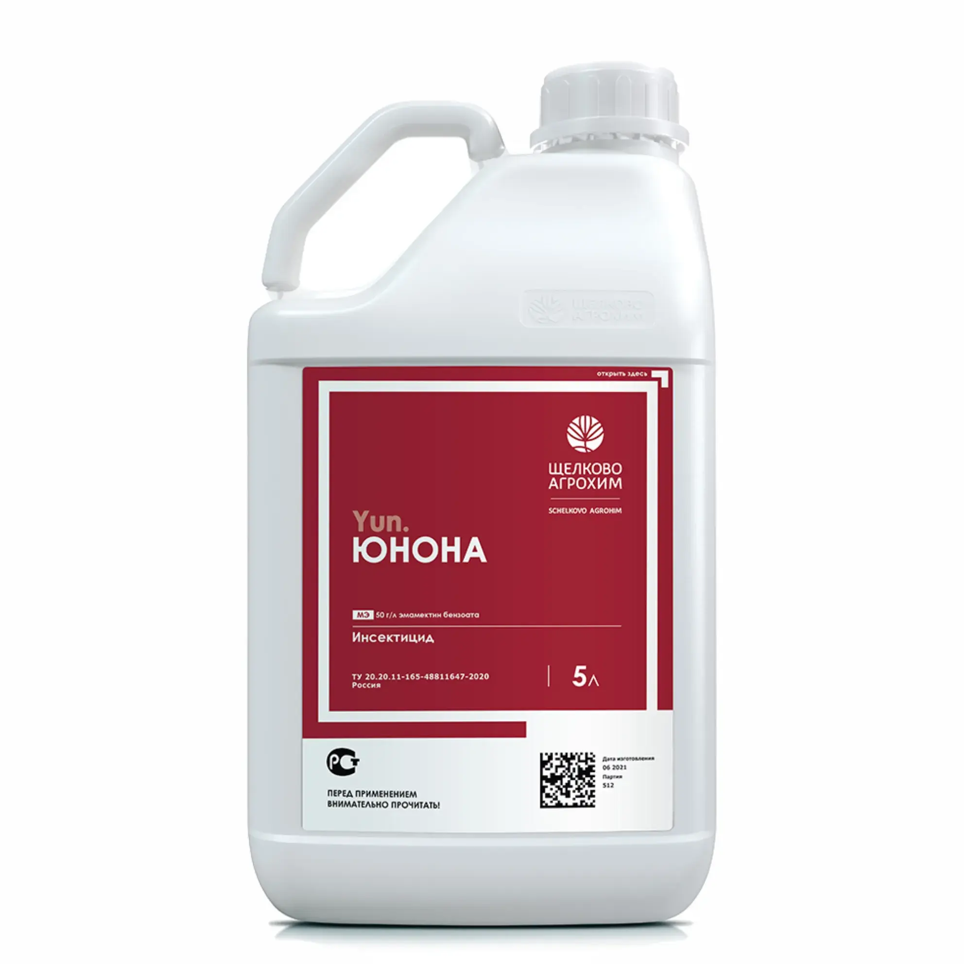 Инсектицид Юнона — контактно-кишечный инсектицид для томата открытого грунта, садов и виноградников. Инновационная микроэмульсия (МЭ) быстро проникает и равномерно распределяется внутри листа, обеспечивая выраженную трансламинарную активность и стабильный контроль гусениц Lepidoptera. Имеет короткий срок ожидания и подходит как эффективный компонент антирезистентных схем.